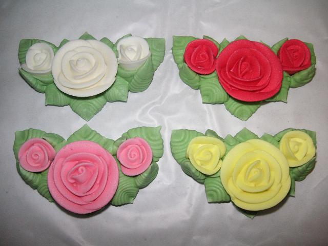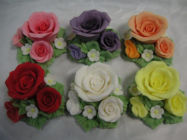 | 8 / 9吋高身錫箔盤 | 中 / 小鯉魚金底托 | 小玫瑰花 | 有葉小彩花 | |